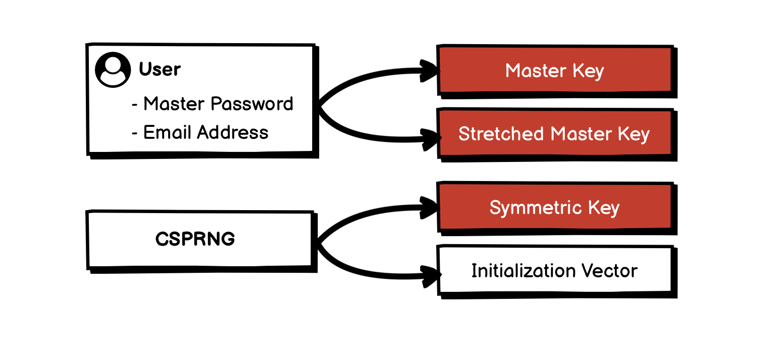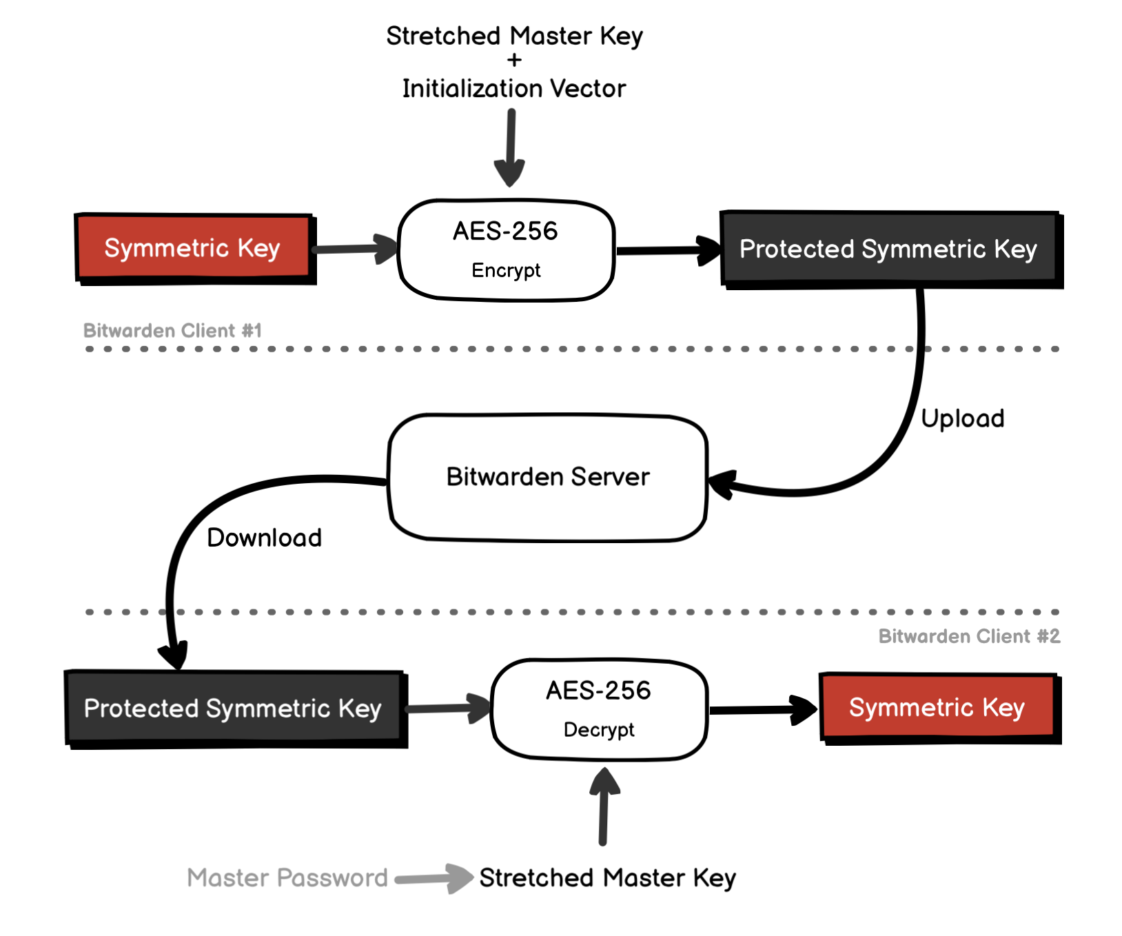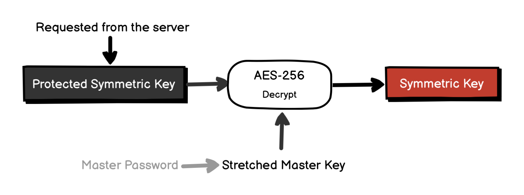 - This Symmetric Key is encrypted using the Stretched Master Key (which is derived from your Master Password) to create the Protected Symmetric Key.