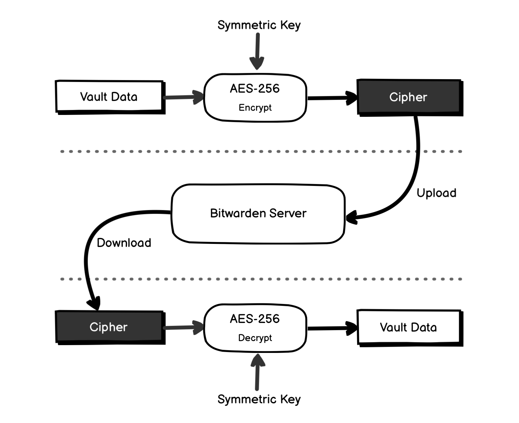 This model ensures all your sensitive data are fully encrypted everywhere outside of your device (during transmission, on Bitwarden’s server,…). Without your Master Password, no one will be able to decrypt your data, even the people with DB access.